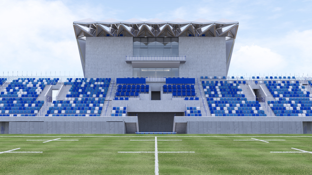 新スタジアムは、メインスタンドが約2,000席(鉄筋コンクリート造4階建て)、バックスタンドが約500席(鉄骨コンクリート造)の、合計約2,500席となる予定だ。